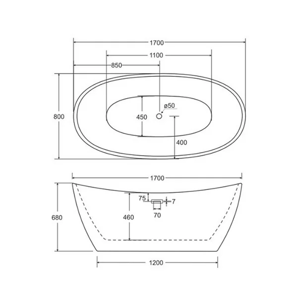 Specificatii tehnice Cada freestanding Besco Ayla 170x80 cm alb lucios: