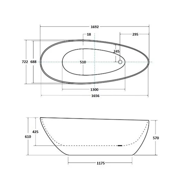 Specificatii tehnice Cada freestanding Besco Goya 170x72 cm alb - negru: