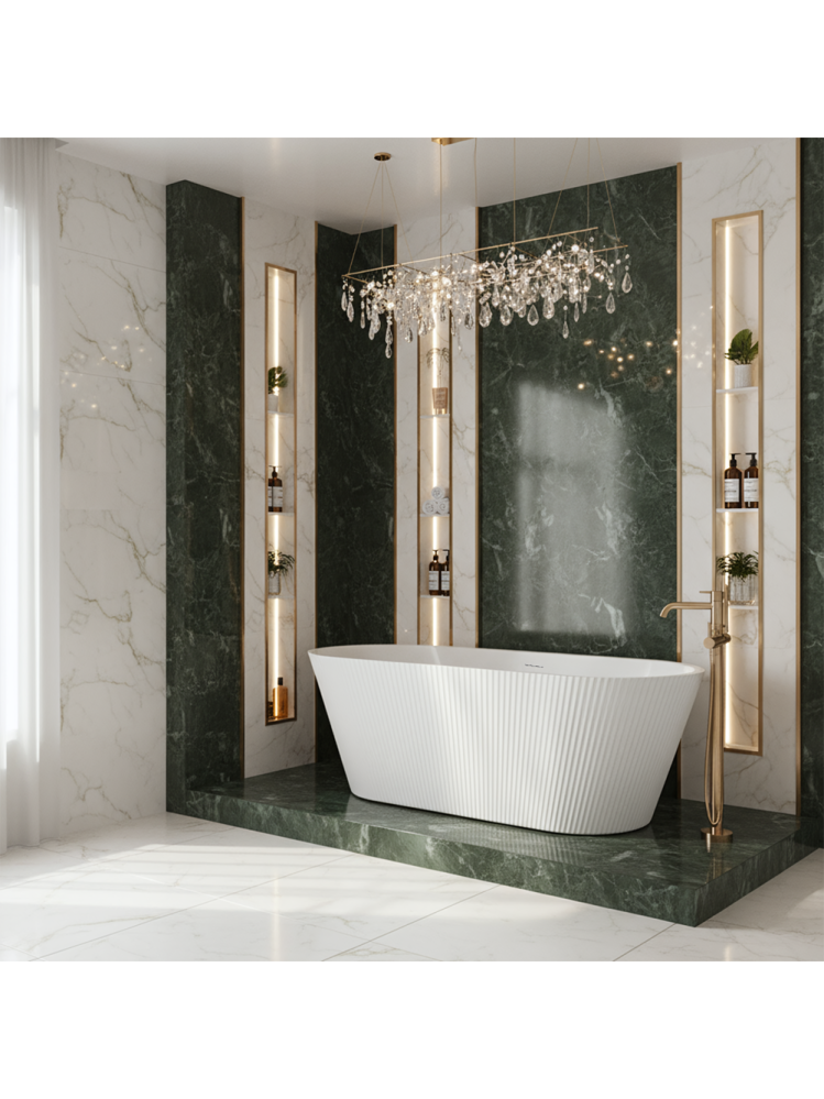 Datorita constructiei sale independente, cada Ofelia poate fi plasata in orice parte a baii - langa perete, in colt sau chiar in centrul camerei - creand astfel un spatiu elegant si armonios. Textura striata de pe laterale reflecta frumos lumina, adaugand profunzime si farmec interiorului.