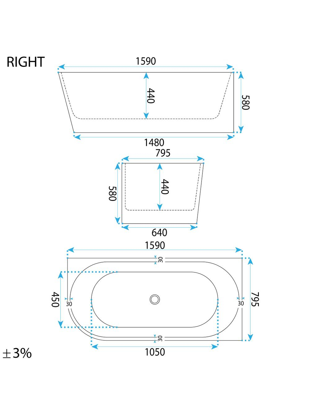 Specificații tehnice Cada freestanding cu ventil cupru periat Rea SYDNEY BELLANTO dreapta 160 cm alb: