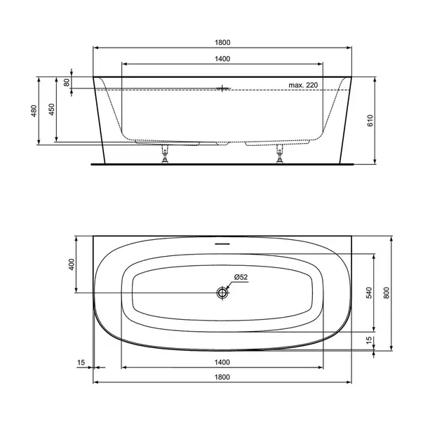 Specificatii tehnice Cada freestanding Ideal Standard Atelier Dea BTW 180x80 cm alb lucios:
