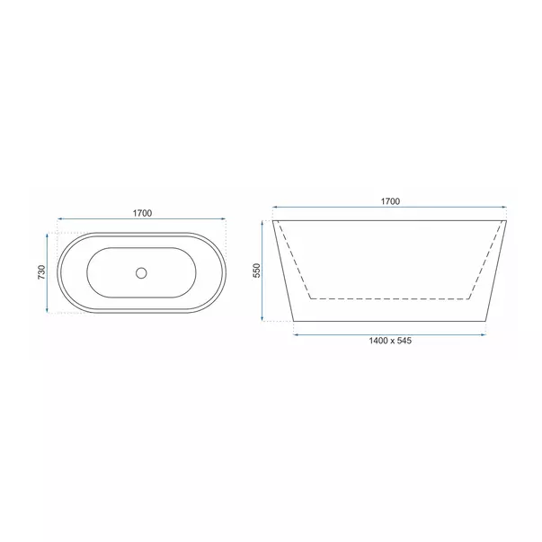 Specificatii tehnice Cada freestanding Rea Milano 170x75 cm alb lucios: