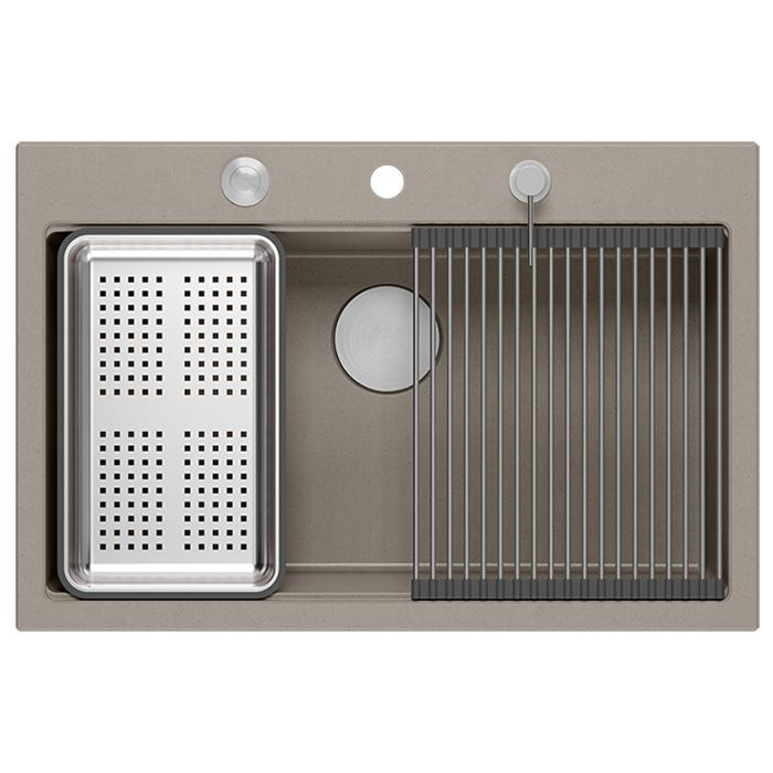 Chiuveta din granit cu design minimalist și modern este perfectă pentru orice bucătărie. Cu o cameră adâncă și spațioasă, oferă un confort de utilizare deosebit. Este o alegere excelentă pentru cei care apreciază calitatea și muncă manuală. Forma sa atemporală, materialele de înaltă calitate utilizate și tehnologia de ultimă generație, împreună cu designul excelent și compatibilitatea soluțiilor, asigură un rezultat final impecabil, care completează fiecare spațiu de bucătărie. Disponibilă în diferite culori, această chiuvetă este echipată cu accesorii suplimentare de bucătărie, precum un dozator de lichide, o placă de tăiat din bambus, un scurgător și o tavă laminată din oțel-silicon. (*Variantele aur și cupru nu includ tavă laminată.)