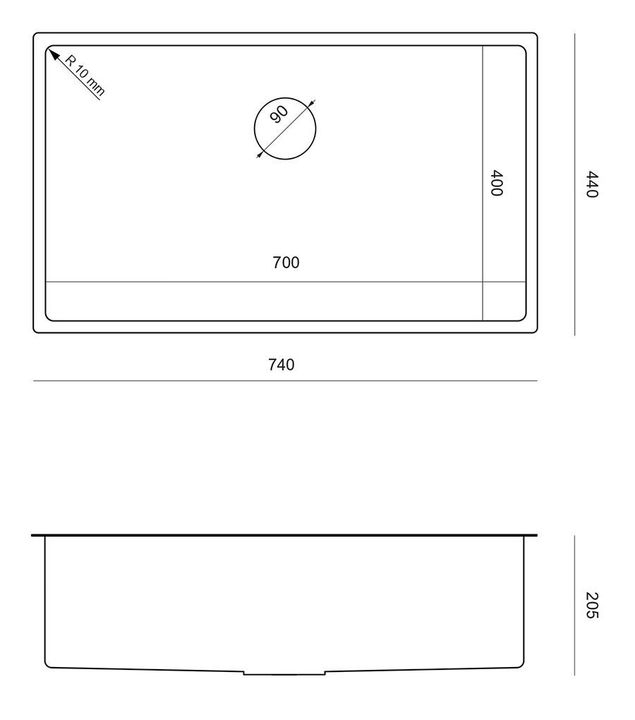 Latimea chiuvetei: 740 mm