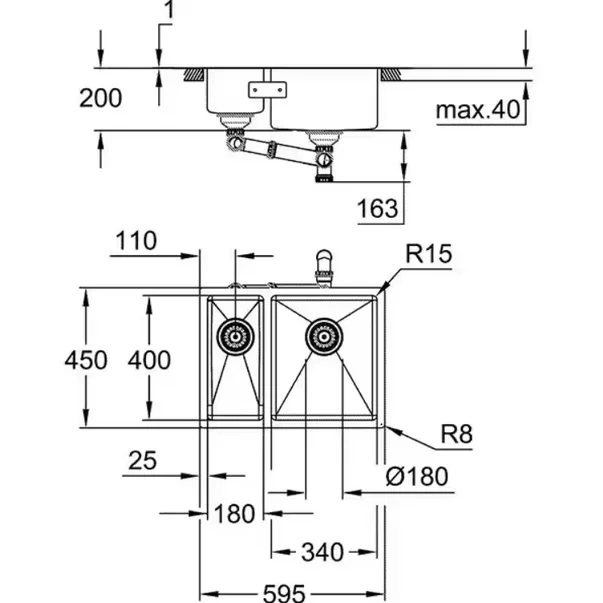 Specificatii tehnice Chiuveta inox Grohe K700U 58.5x44.1 cm 2 cuve orientare dreapta: