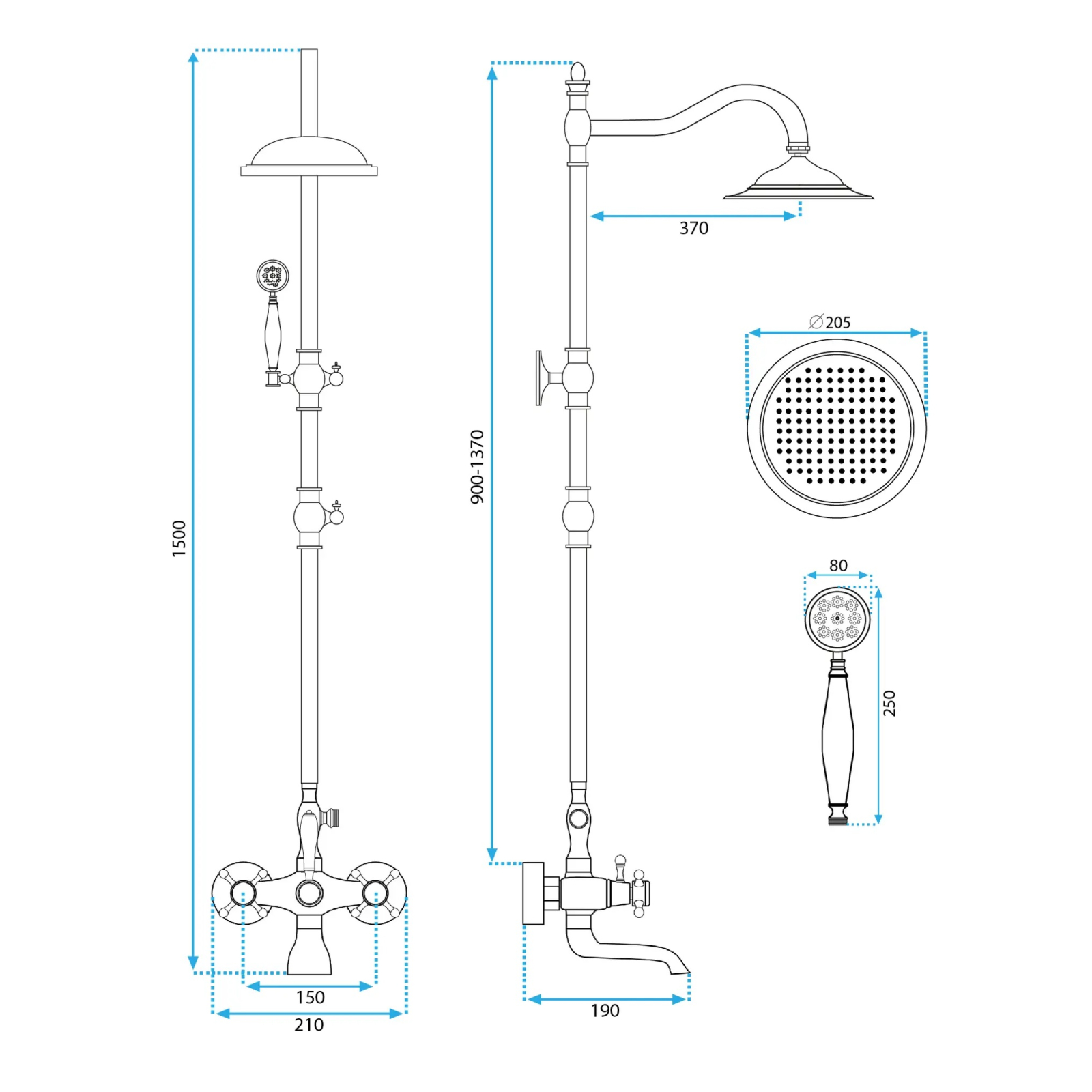 Specificatii tehnice Coloana de dus cu baterie dubla comanda bronz periat Rea Bergamo: