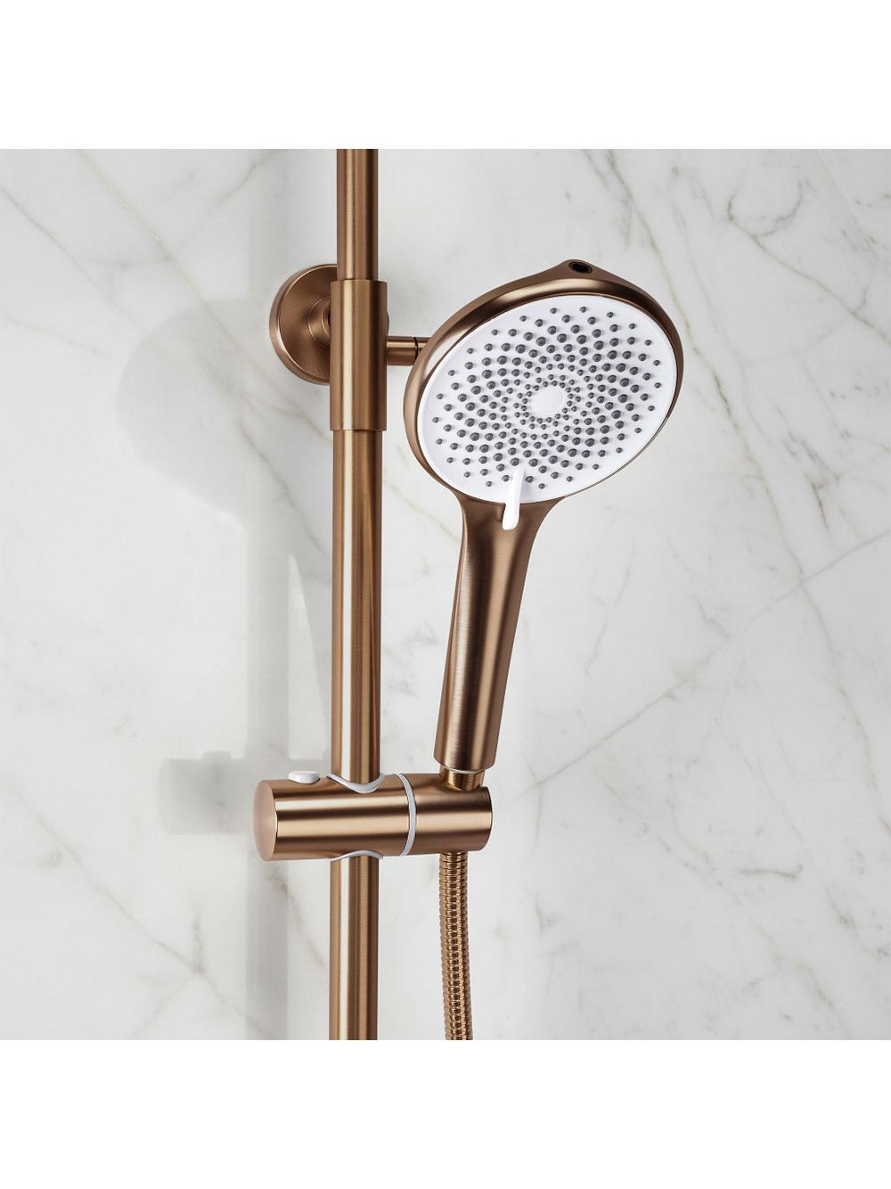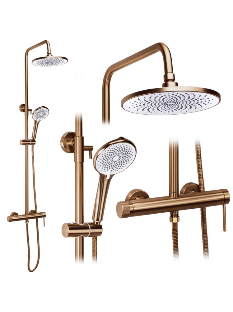 Descoperă soluția perfectă pentru zona ta de duș cu setul de duș aplicat Rea Foss Clif în finisajul modern Cupru Periat. Acest set este ideal pentru cei care apreciază designul minimalist și funcțiile bine gândite. Realizat din alamă durabilă, bateria și dușul superior reglabil asigură confort la utilizare. Culoarea Cupru Periat adaugă un aer estetic băii tale contemporane, iar corpul din alamă garantează rezistență la utilizare frecventă. Pară de duș multifuncțională oferă moduri standard și un jet inovator tip „bideu”. Sistemul Anti-Calc facilitează îndepărtarea depunerilor de calcar, iar montajul aplicat permite o instalare rapidă și ușoară. Alege setul de duș Rea Foss Clif pentru un design modern și funcționalitate superioară în baia ta.