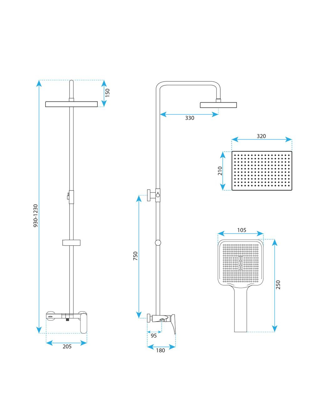 Bateria de cada-dus cu gura fixa ofera o functionalitate 3-in-1, permițând controlul fluxului de apa fix, al dusului manual si al gurii cu ajutorul unor comutatoare convenabile. Para de dus rectangulara asigura un jet uniform si relaxant de apa. Inaltimea reglabila a paraiului permite ajustarea bratului pentru un confort maxim. Materialele din care este construit setul, alama si ABS, asigura un corp solid si rezistenta la daune mecanice.