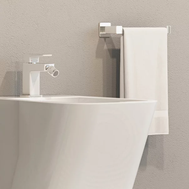 Designul minimalist al colectiei Nelson este inspirat de unghiuri drepte si margini usor rotunjite, creand un aspect contemporan si rafinat. Finisajul cromat confera un aspect elegant si lucios, fiind totodata foarte versatil si usor de integrat in orice decor de baie.