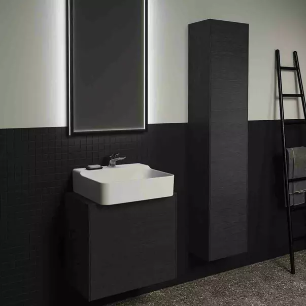 Specificatii tehnice Dulap baza suspendat Ideal Standard Atelier Conca 1 sertar si blat cu decupaj central 60 cm finisaj stejar inchis: