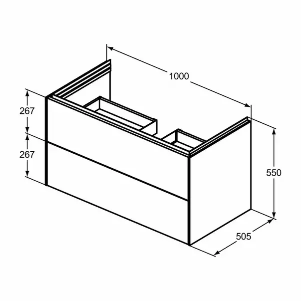 Specificatii tehnice Dulap baza suspendat Ideal Standard Atelier Conca 2 sertare alb mat 100 cm: