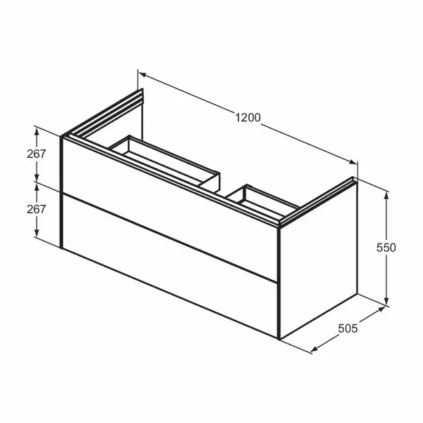 Specificatii tehnice Dulap baza suspendat Ideal Standard Atelier Conca 2 sertare alb mat 120 cm: