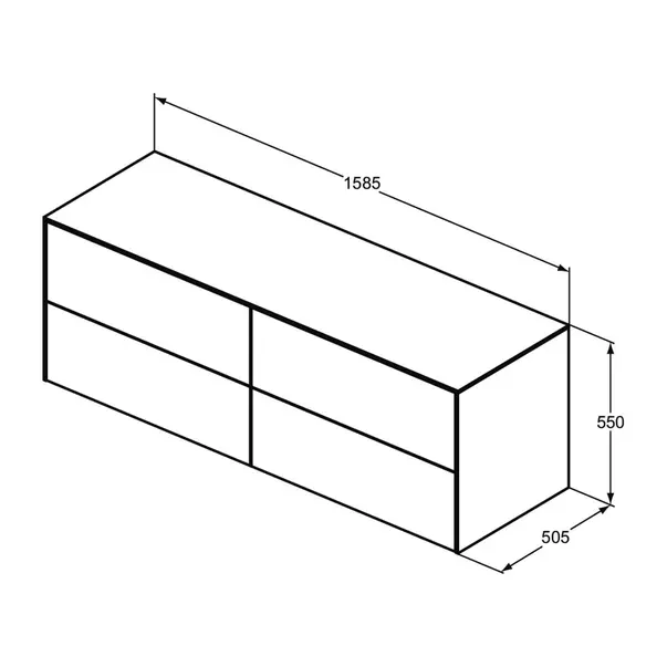 Specificatii tehnice Dulap baza suspendat Ideal Standard Atelier Conca alb mat 4 sertare cu blat 160 cm: