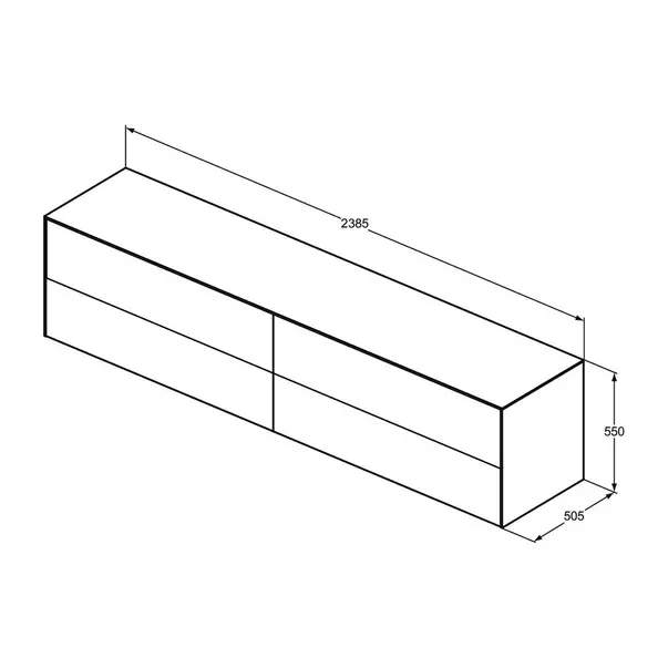 Specificatii tehnice Dulap baza suspendat Ideal Standard Atelier Conca alb mat 4 sertare cu blat 240 cm: