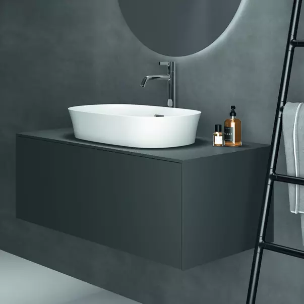 Specificatii tehnice Dulap baza suspendat Ideal Standard Atelier Conca antracit mat 1 sertar si blat cu decupaj central 100 cm: