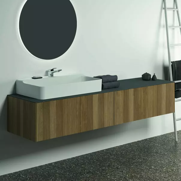 Specificatii tehnice Dulap baza suspendat Ideal Standard Atelier Conca finisaj nuc inchis 2 sertare 200 cm: