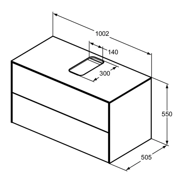 Specificatii tehnice Dulap baza suspendat Ideal Standard Atelier Conca finisaj nuc inchis 2 sertare si blat cu decupaj central 100 cm: