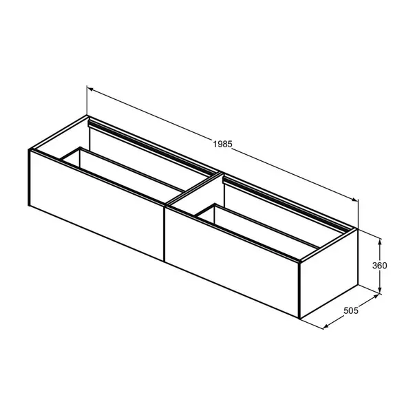 Specificatii tehnice Dulap baza suspendat Ideal Standard Atelier Conca finisaj stejar deschis 2 sertare 200 cm: