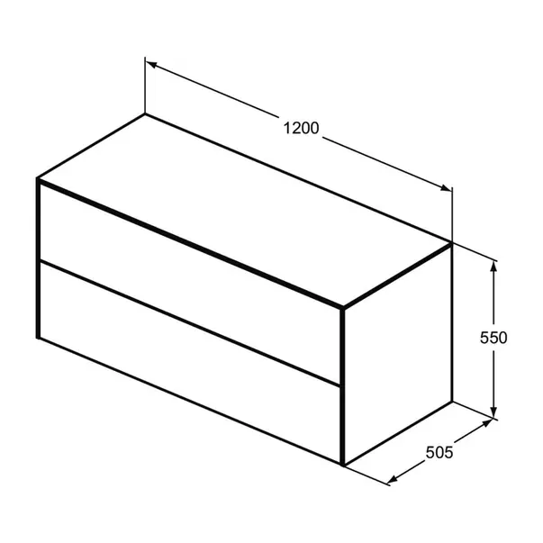Specificatii tehnice Dulap baza suspendat Ideal Standard Atelier Conca finisaj stejar inchis 2 sertare cu blat 120 cm: