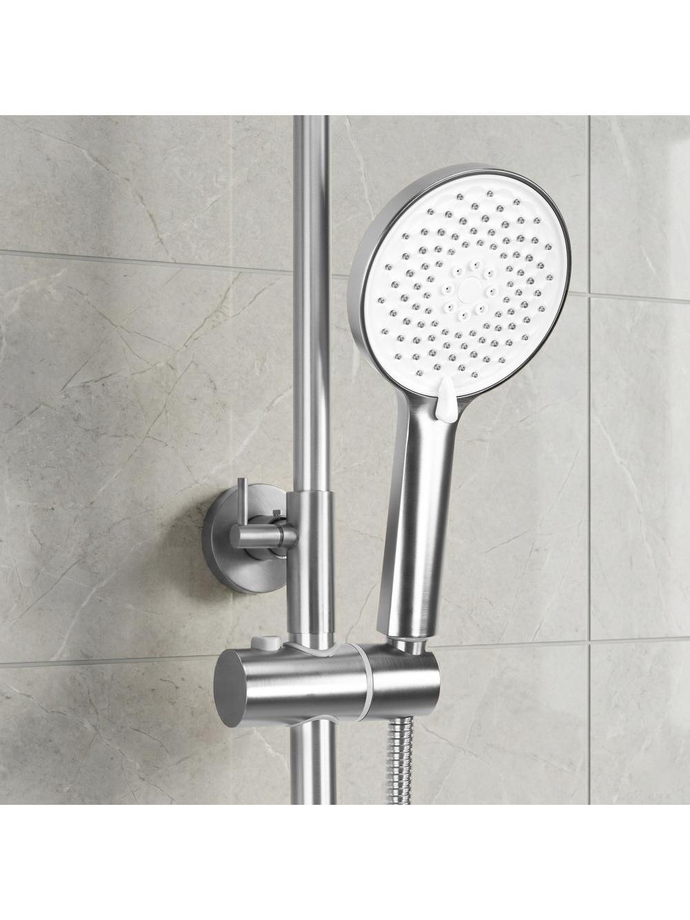 Explorează luxul cotidian al dușului cu setul de duș expus Rea Ontario, remarcabil prin suprafața sa periată. Acest element sofisticat a fost creat pentru cei mai exigenti utilizatori, combinând estetica rafinată cu tehnologia modernă de finisare. Acoperirea PVD aplicată asigură nu doar un aspect impecabil, ci și o rezistență remarcabilă la zgârieturi și factori externi, menținând strălucirea produsului de-a lungul anilor. Textura periată a suprafeței conferă interiorului un caracter modern și mat, reducând vizibil urmele de apă și amprentele. Tehnologia de acoperire PVD garantează durabilitate maximă a culorii și rezistență la deteriorări mecanice și coroziune. Capul de duș mare oferă un jet larg și relaxant, recreând atmosfera unui SPA profesionist. Dușul de mână confortabil permite o spălare precisă și facilitează curățarea zilnică a zonei de duș. Montajul expus permite o instalare eficientă și conferă băii un aer industrial și modern.