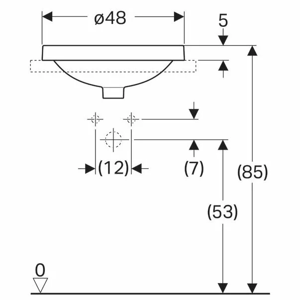 Specificatii tehnice Lavoar incastrat Geberit Variform 48 cm fara orificiu preaplin rotund: