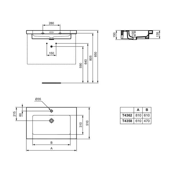 Specificatii tehnice Lavoar pe mobilier Ideal Standard Atelier Extra alb lucios 61 cm: