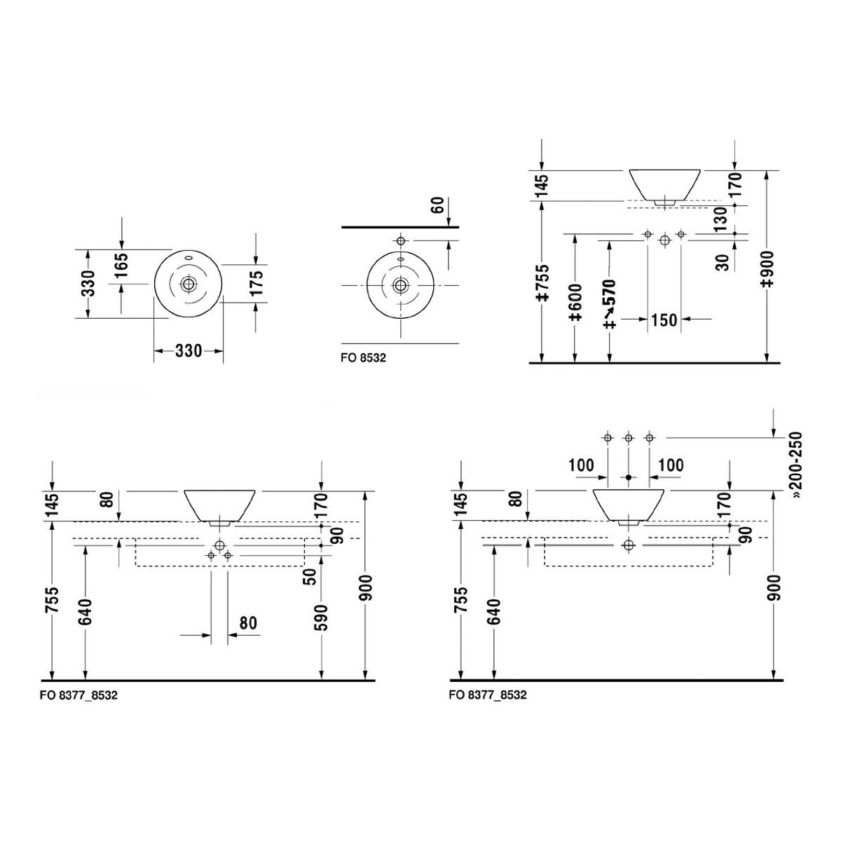 Specificatii tehnice Duravit Starck 1 lavoar 33x33 cm rotund de blat alb 0408330000: