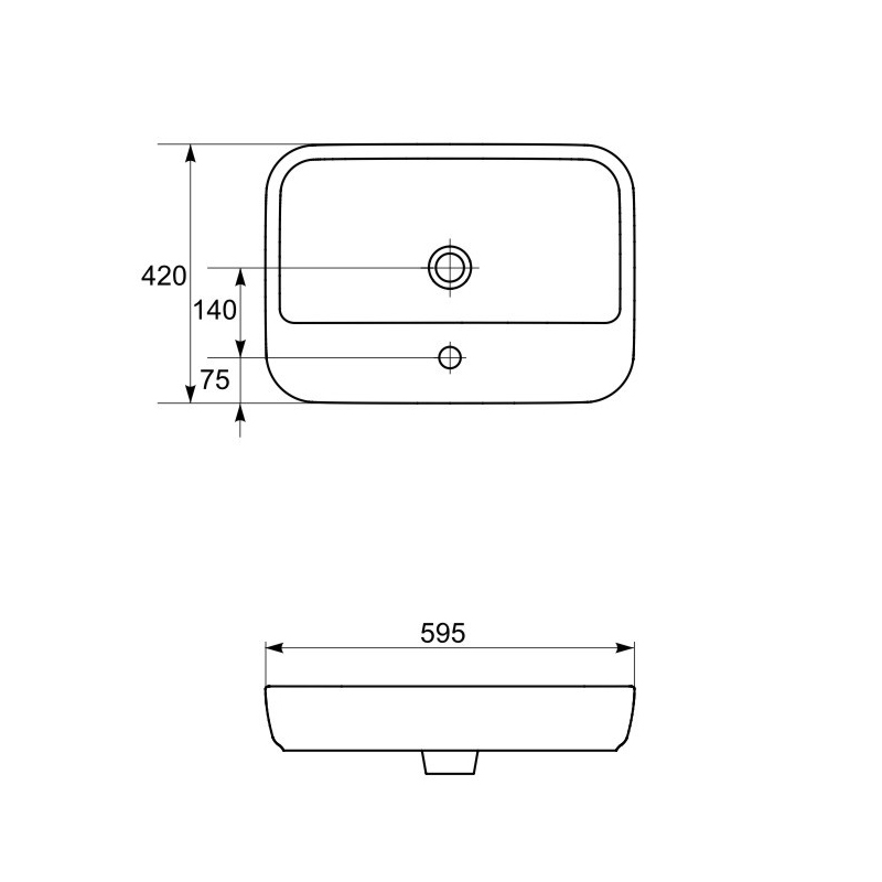 lavoar dreptunghiular pe blat cu orificiu central pentru baterie