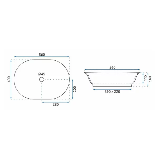 Specificatii tehnice Lavoar pe blat Rea Roma 56 cm negru mat marmura:
