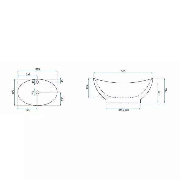 Specificatii tehnice Lavoar pe blat Rea Cindy oval finisaj alb lucios 59 cm: