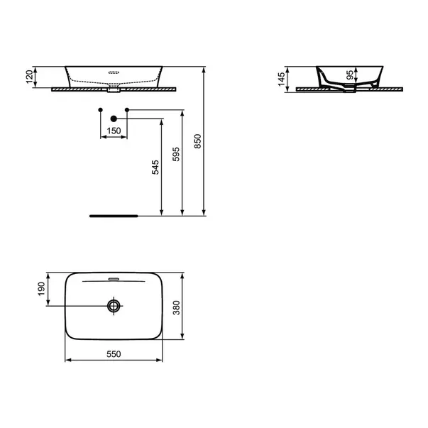Specificatii tehnice Lavoar pe blat Ideal Standard Atelier Ipalyss Powder 55 cm albastru cu preaplin: