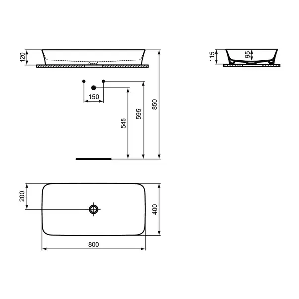 Specificatii tehnice Lavoar pe blat Ideal Standard Atelier Ipalyss Powder 80 cm albastru: