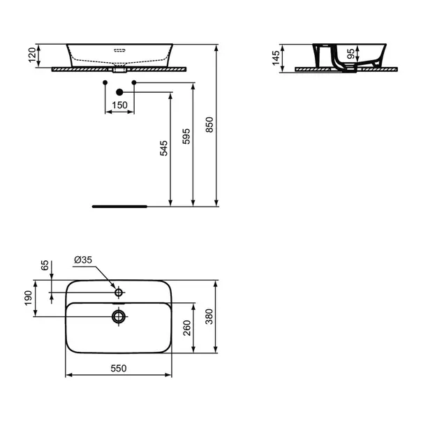 Specificatii tehnice Lavoar pe blat Ideal Standard Atelier Ipalyss Sage 55 cm verde cu orificiu baterie: