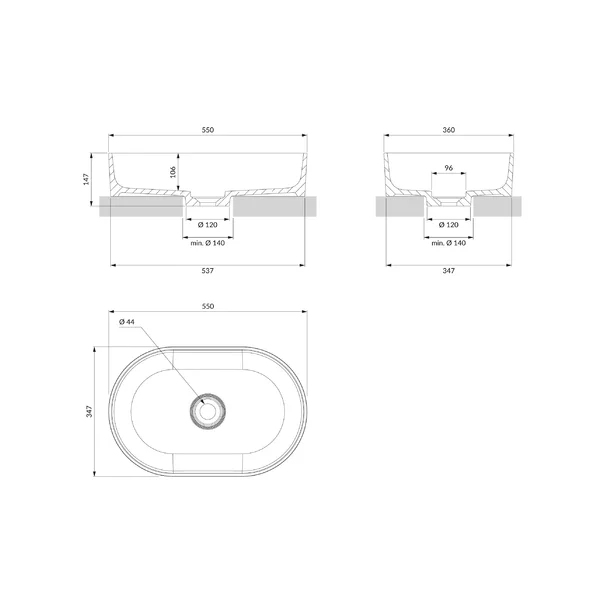Specificatii tehnice Lavoar pe blat Omnires Ovo M+ gri cenusiu: