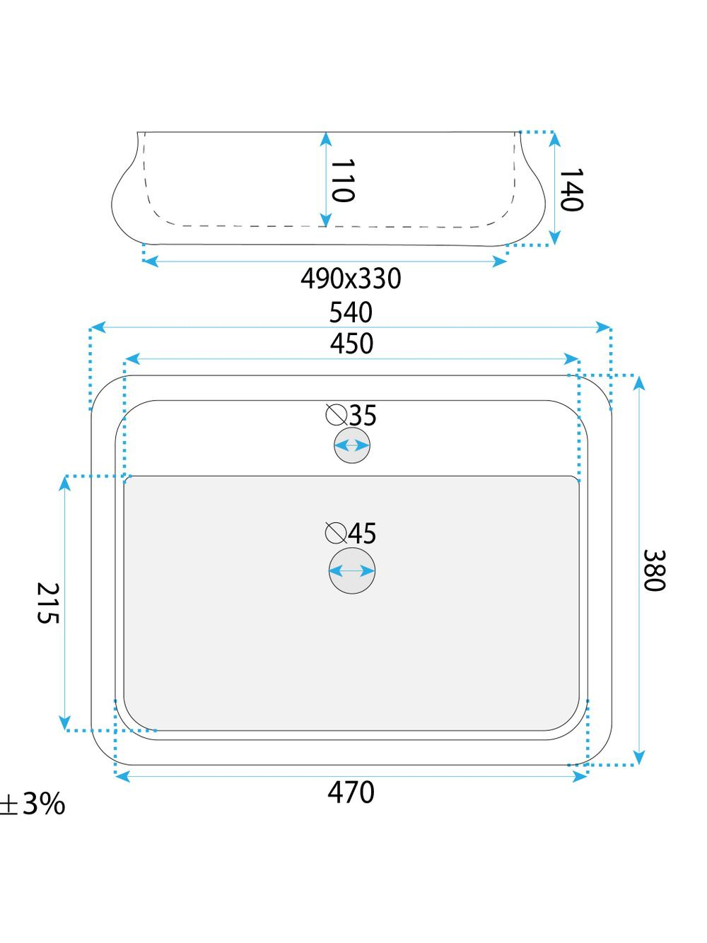 Specficatii tehnice Lavoar pe blat Rea Castel: