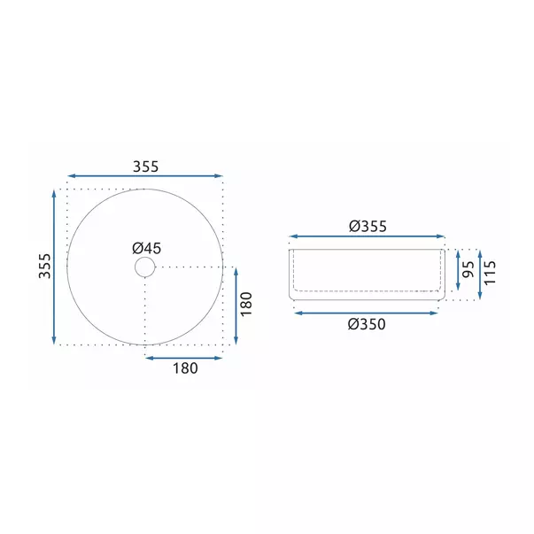 Specificatii tehnice Lavoar pe blat Rea Cristal rotund finisaj sticla transparenta 36 cm: