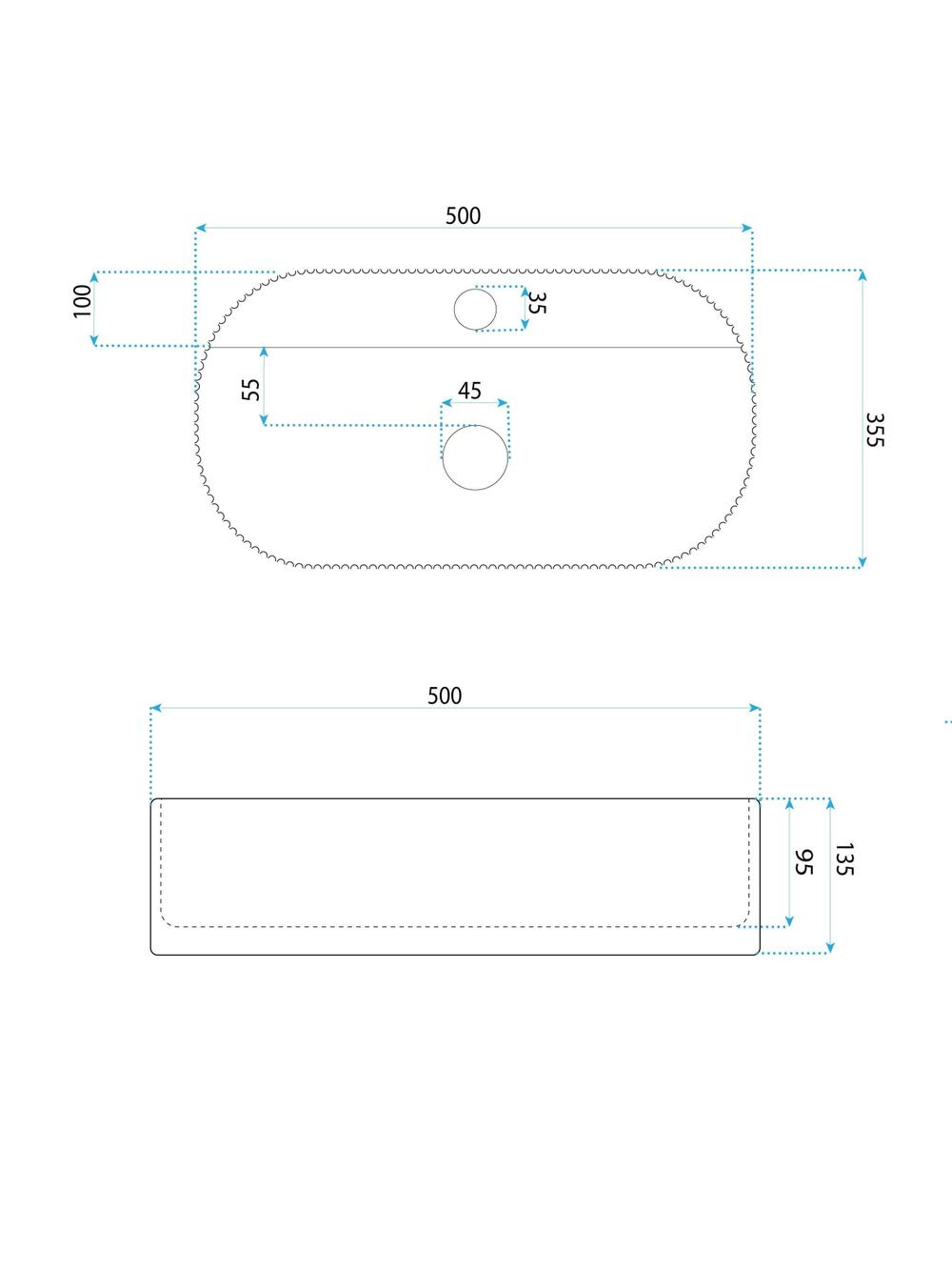 Specficatii tehnice Lavoar pe blat Rea Marcela 50 Kallisto: