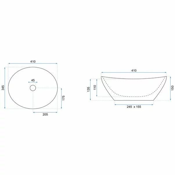 Laƒtimea chiuvetei: 345 mm