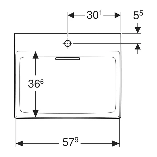 Specificatii tehnice Lavoar pe mobilier Geberit One cu scurgere speciala 60 cm alb cu orificiu baterie: