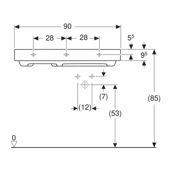 Specificatii tehnice Lavoar pe mobilier Geberit One cu scurgere speciala 90 cm alb blat stanga fara preaplin: