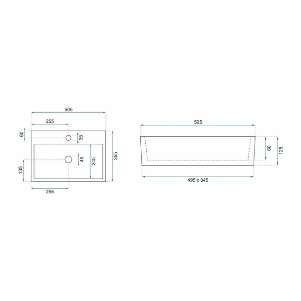 Specificatii tehnice Lavoar pe blat Rea Valeria 51 cm alb: