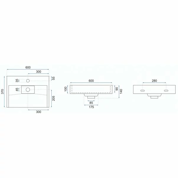 Specificatii tehnice Lavoar pe blat Rea Goya 60 cm: