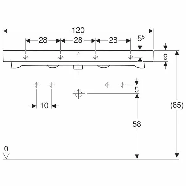 Lavabo pe mobilier/suspendat cu orificiu baterie stânga și dreapta Geberit Icon 120 cm