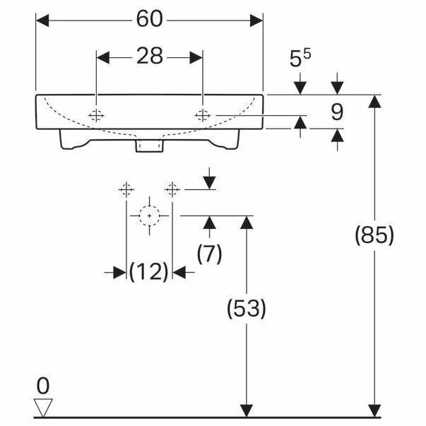 Lavoar pe mobilier/suspendat Geberit Icon 60 cm cu orificiu baterie centrat fără orificiu preaplin
