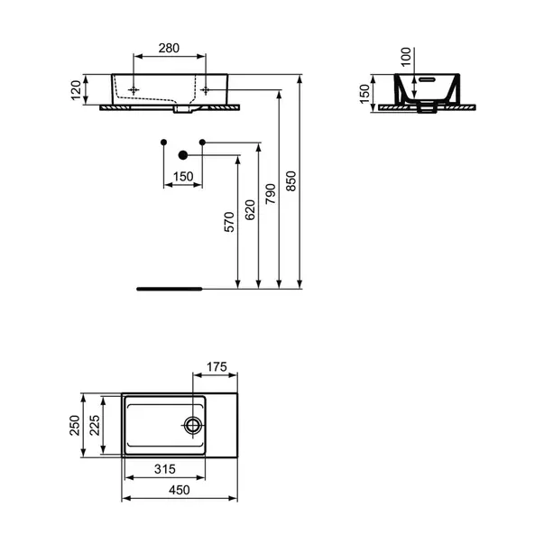 Specificatii tehnice Lavoar suspendat Ideal Standard Atelier Extra alb lucios 45 cm cu orificiu preaplin dreapta: