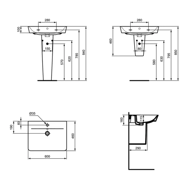 Specificatii tehnice Lavoar suspendat Ideal Standard Connect Air Cube 60x46 cm negru mat: