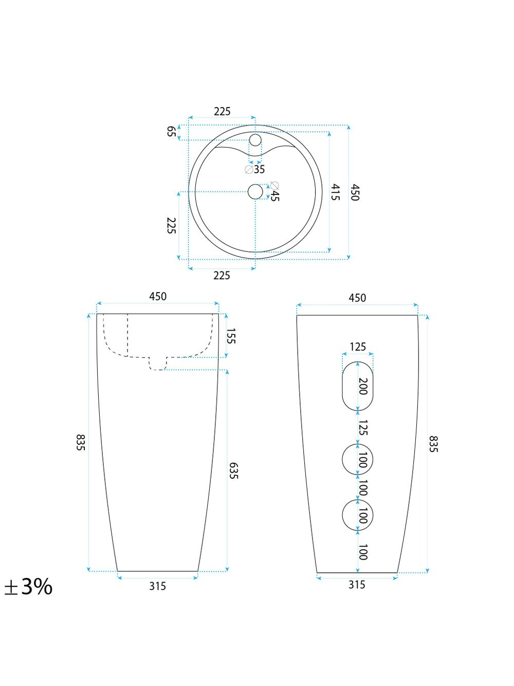 Specificații tehnice Lavoar freestanding de sine stătător Rea Anya Savana Matt: