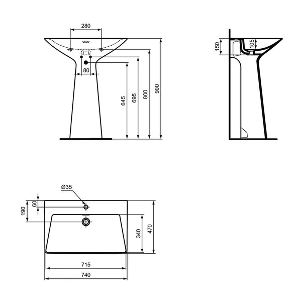Specificatii tehnice Lavoar freestanding Ideal Standard Atelier Tipo-Z negru lucios 74 cm: