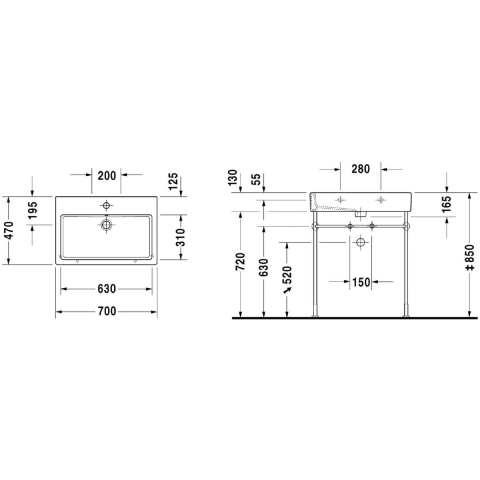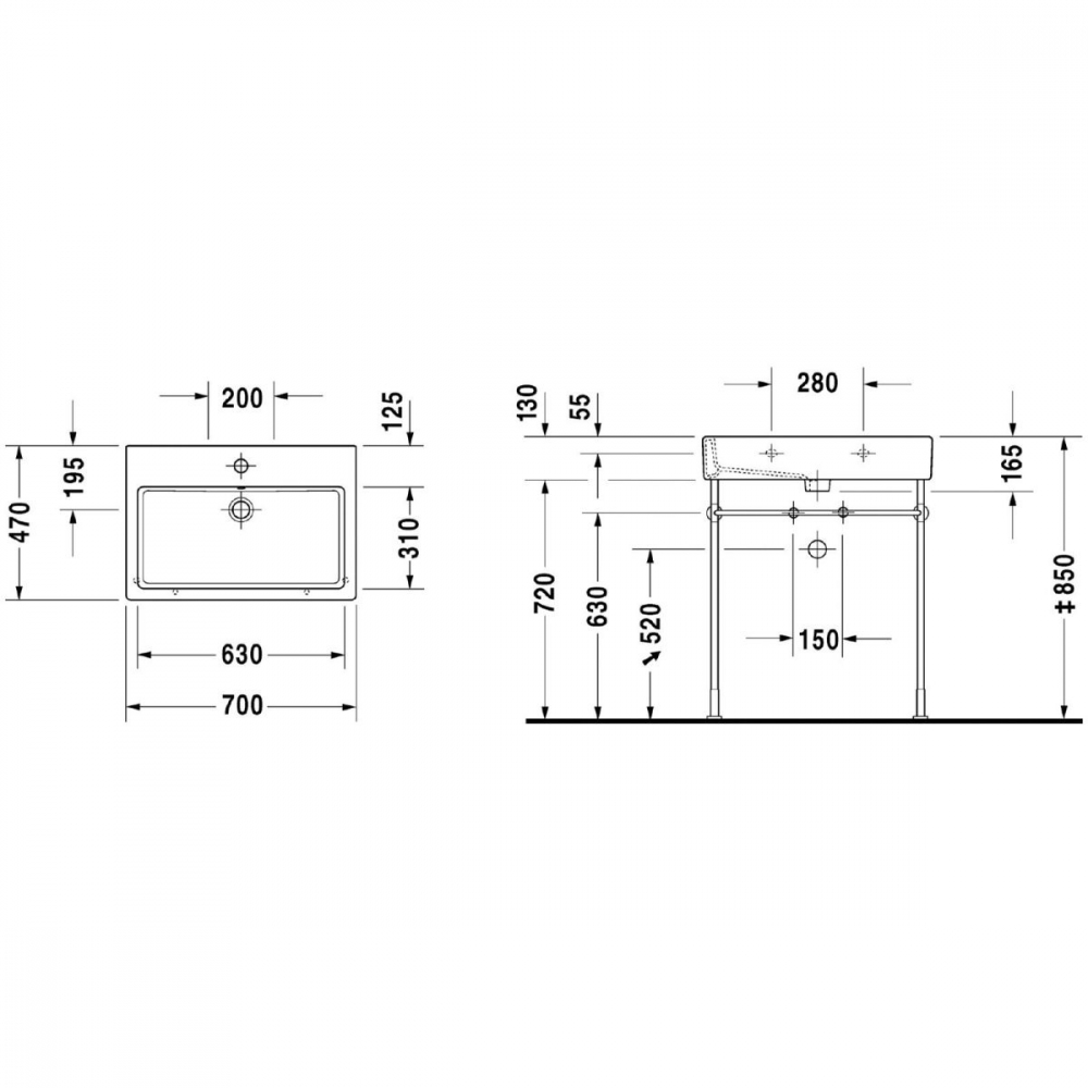 Specificatii tehnice Duravit Vero lavoar 70x47 cm dreptunghiular mobilier alb 0454700000: