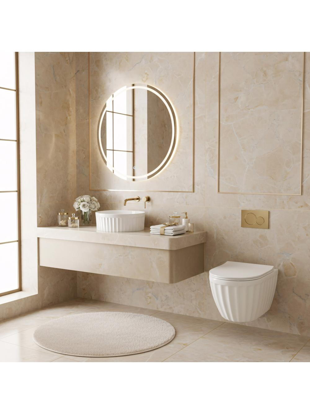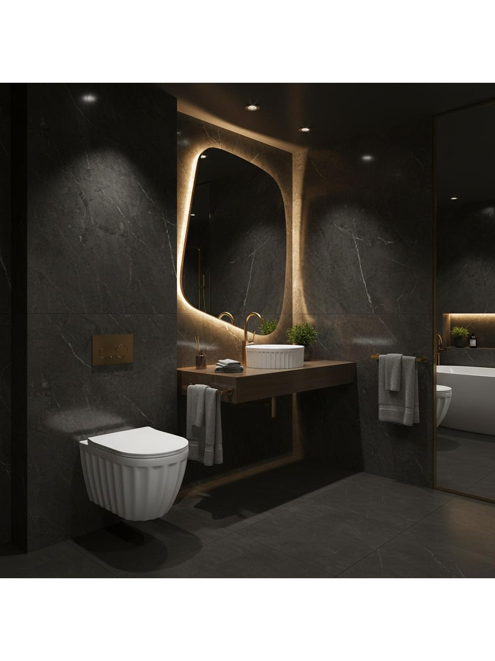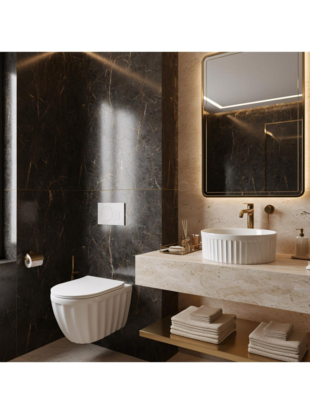Alegând lavoarul Rea Duo, optezi pentru calitate fără compromisuri și un design atrăgător. Forma decorativă transformă igiena zilnică într-o experiență plăcută într-un cadru luxuriant. De asemenea, ai la dispoziție un vas WC suspendat din aceeași serie, pentru o amenajare unitară a întregii băi.